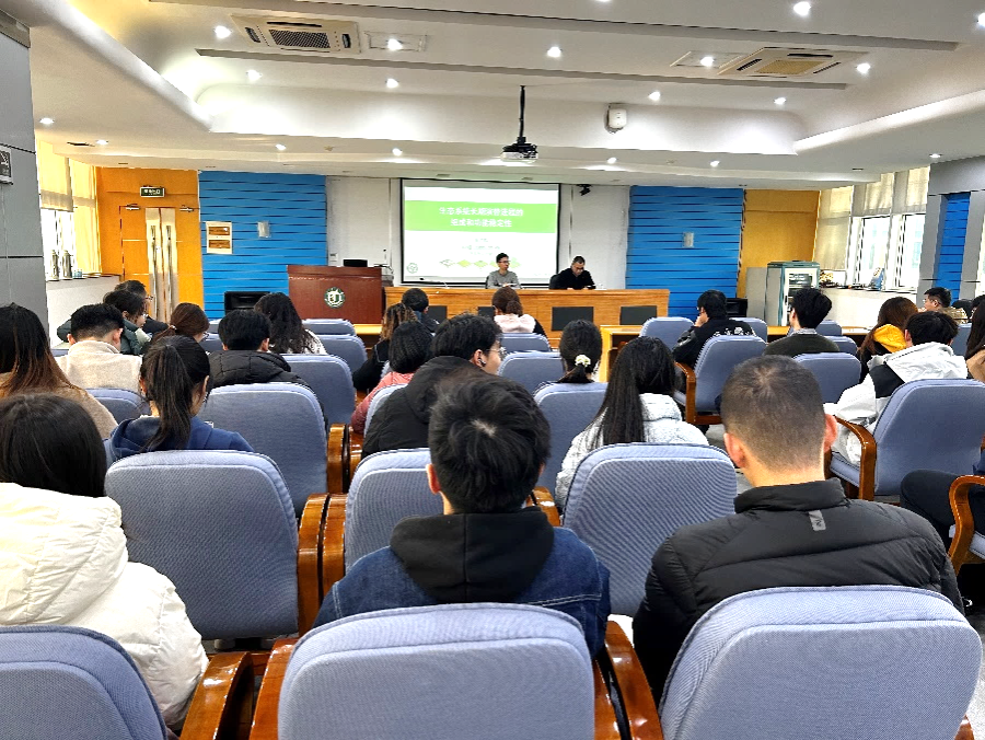 师生开展题为“长期演替进程中群落物种组成和功能稳定性的变化趋势”的学术报告。报告会由学院钱飞跃副院长主持,有爱爱
