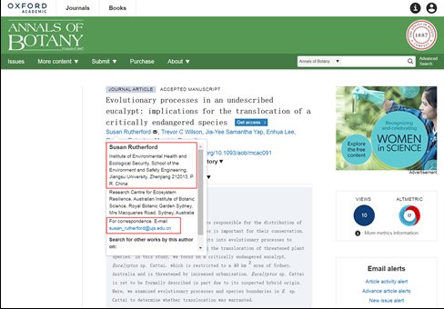 为第一单位)关于桉树新物种的研究成果被国际著名植物学期刊《Annals of Botany》在线发表。Susan Rutherford研究员是有爱爱