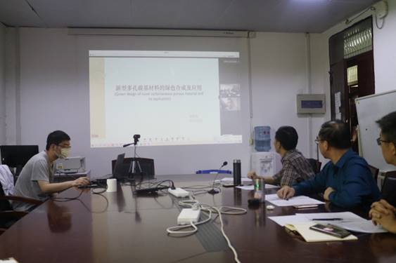 师生进行了在线学术交流。交流期间,蒋腾耀博士作了题目为“新型多孔碳基材料的绿色合成及应用(Green design of novel carbonaceous porous material and its application)”的在线学术报告,系统全面地介绍了新型多孔碳基材料的种类、合成方法以及用途,并着重介绍了自己研发的材料绿色合成新工艺,对我们充分认识碳基材料的最新合成技术并利用生物基开发新型材料具有重要的启发及借鉴作用。线上交流期间,各位师生积极参与讨论,收获颇多。