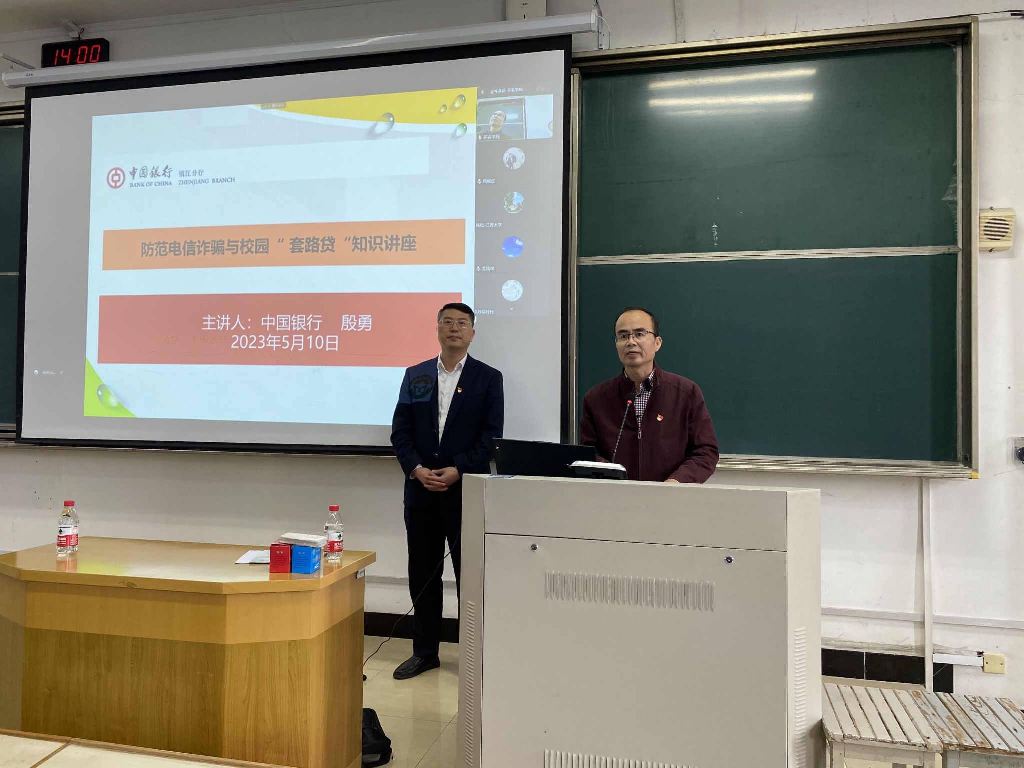 党委举办防范电信诈骗及校园“套路贷”知识讲座,线上线下同步进行。特邀中国银行镇江扬中支行副行长殷勇作为主讲人,学院党委书记黄勇强主持,学院全体师生党员、部分非党员教职工、所有寝室长、家庭经济困难学生共计300余人参加学习。