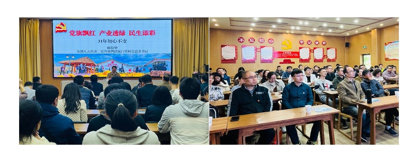 在宜人书院,全国人大代表、白塔村党总支书记欧阳华给我们上党课,讲述了在党建引领下,白塔村华美蝶变的故事。村“两委”班子坚持“生态立村、文化强村、旅游富民”的发展思路,艰苦创业,把一个穷山沟打造成“全国文明村”“全国生态文化村”“全国乡村旅游重点村”。
