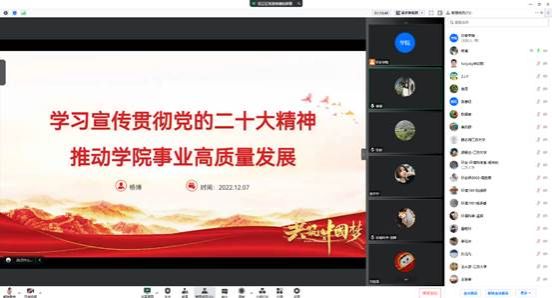 为教育引导师生把思想和行动统一到党的二十大精神上来,不断推进学院事业快速高质量发展,12月7日,有爱爱