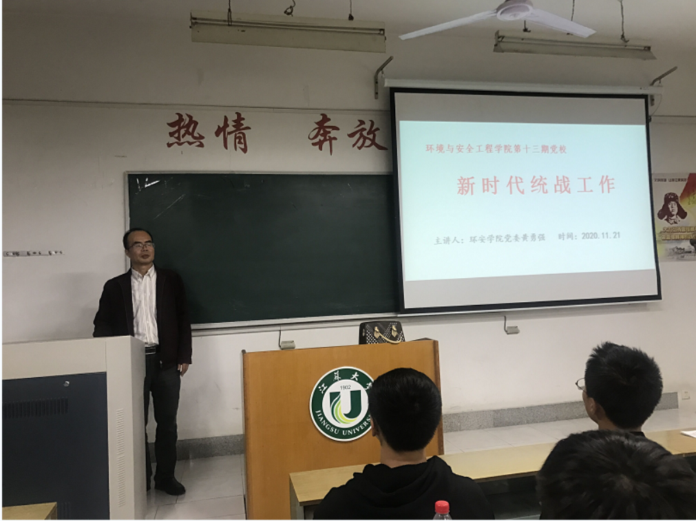 党委书记黄勇强结合《中国共产党统一战线工作条例(试行)》,以统战工作的定义、历史、统战工作内容为主线,针对新时代统战工作的新特点、新任务,以《新时代党的统战工作》为题进行了讲座。黄勇强书记针对新时代十二类统战工作对象,重点以正确认识和处理政党、民族、宗教、阶层关系、海内外同胞等五个关系的内容和要求,向第十三期党校的学员进行了生动的讲解。