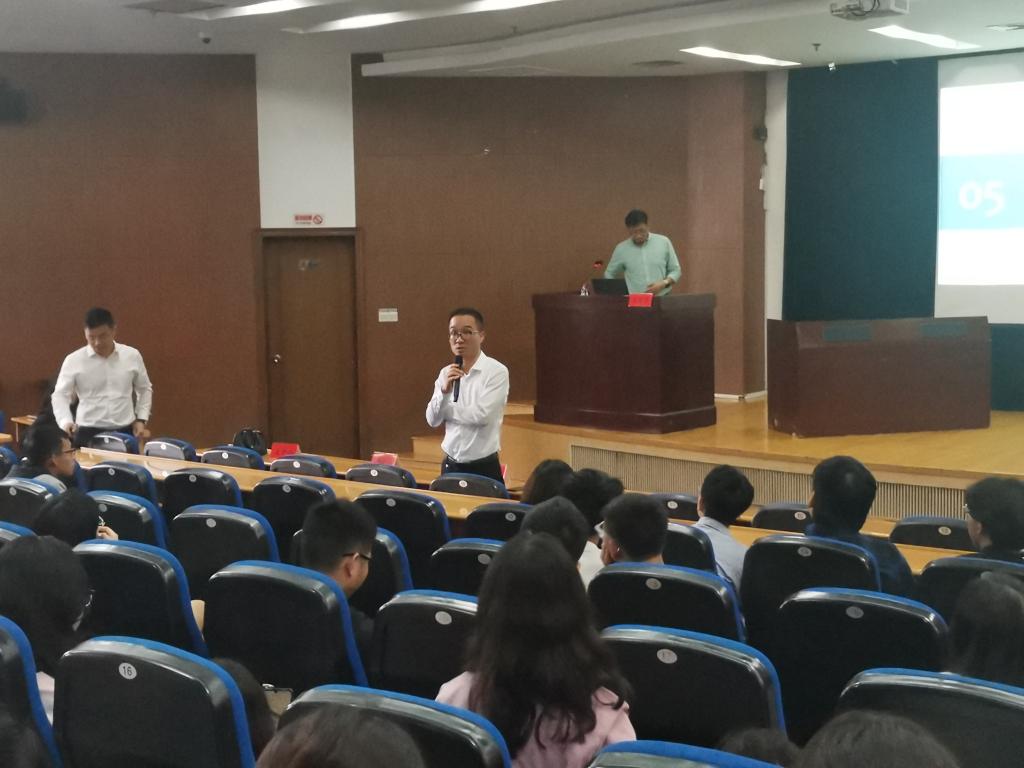 在讲堂群110举行校外导师聘任仪式,出席聘任仪式的校外嘉宾有南京筑安信息科技有限公司总经理荆建栋、苏州乐知安全管理服务有限公司总经理唐为锋、无锡国诚安全环境科技有限公司总经理陈飞、江苏省环境应急与事故调查中心主任科员陈拂晓、镇江丹阳市生态环境局办公室主任杭颖、江苏和合环保集团副总经理孙乃明、江苏苏美达成套设备工程有限公司国内环境工程事业部总经理李举。聘任仪式由学院党委副书记、副院长杨博主持。
